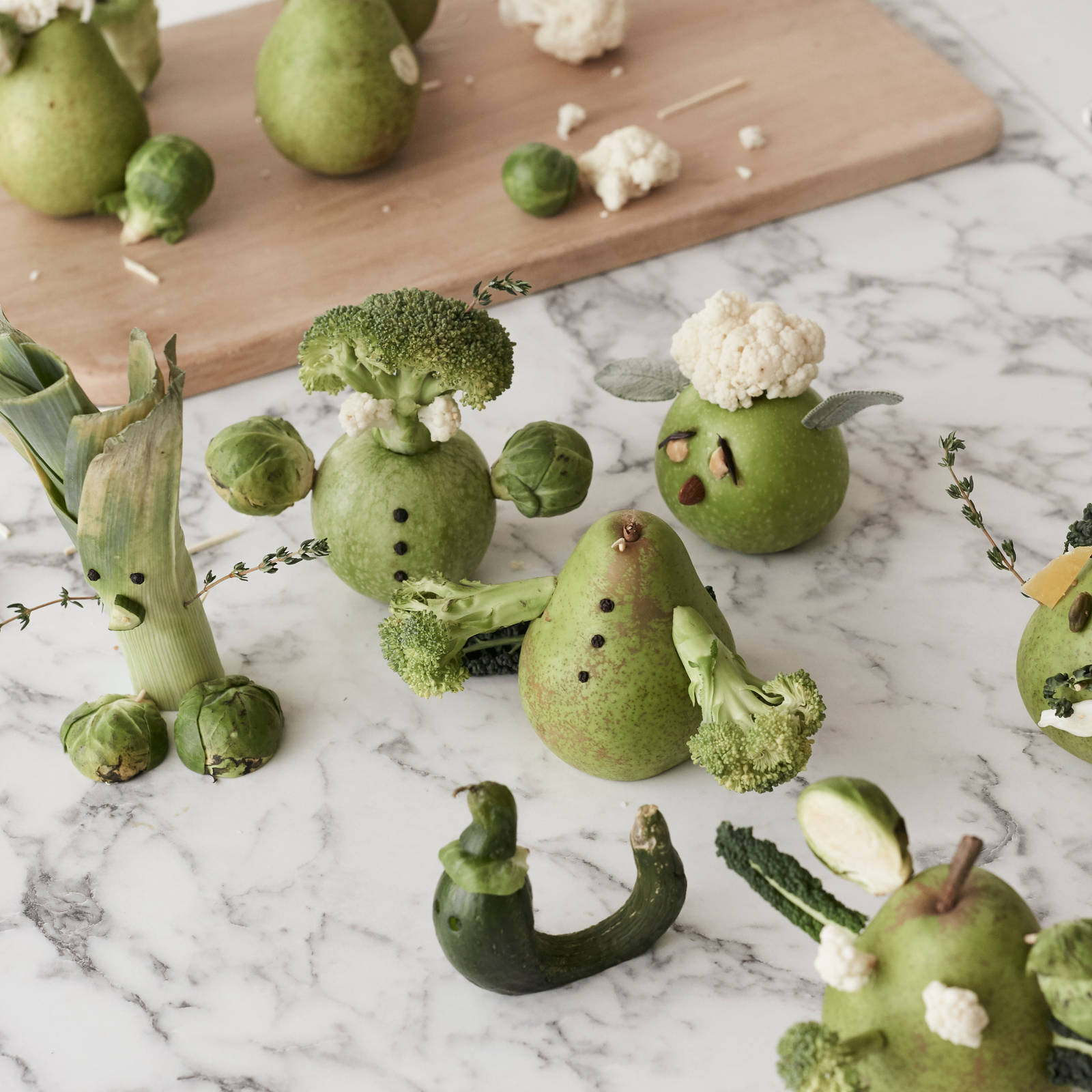 La matlagingen være en del av aktiviteten på kjøkkenet og ta med barna. Lag gjerne morsomme figurer av frukt og grønnsaker. Her er det bare å la kreativiteten flyte!