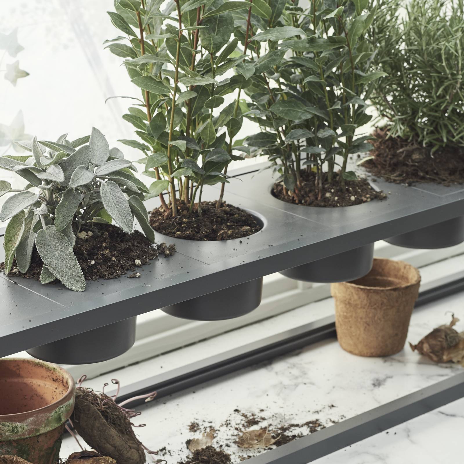 Det er mange gode interiørløsninger for å lykkes med dyrking innendørs i vinterhalvåret. Med innredning for dyrking og tilhørende plantebelysning får plantene det lyset de trenger for å holde seg friske og grønne selv i de mørke vintermånedene. Da trenger du ikke ta opp hele plassen i kjøkkenvinduet, integrer plantekassene i kjøkkeninnredningen, plassere de frittstående på benken eller i en hylle. Da kan du dyrke enkelt i løse spesialpotter og ha ferske krydder hele året!