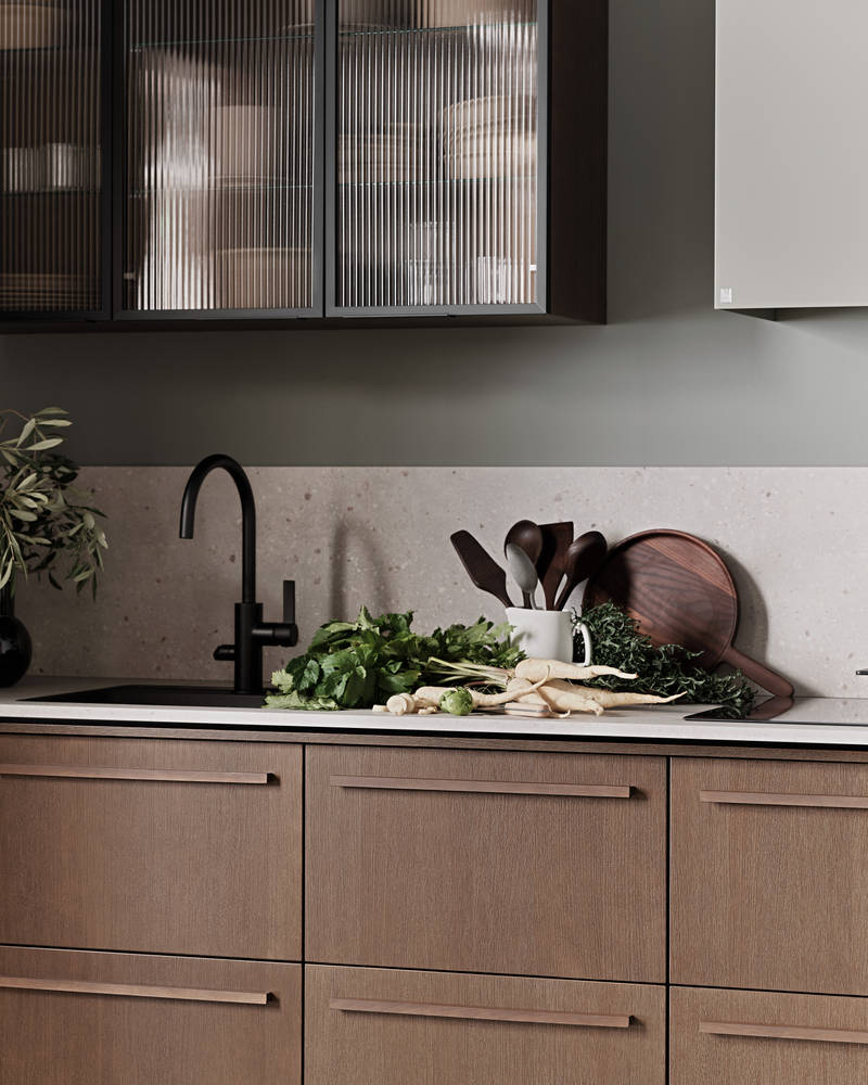 I hjertet av den pastellfargede leiligheten til skuespiller Thea Sofie Loch Næss finner vi et kjøkken utenom det vanlige: De knallrøde skapene er kombinert med ekte norsk naturstein og naturlig treverk. Kult, unikt og gøy, akkurat som Thea Sofie selv.