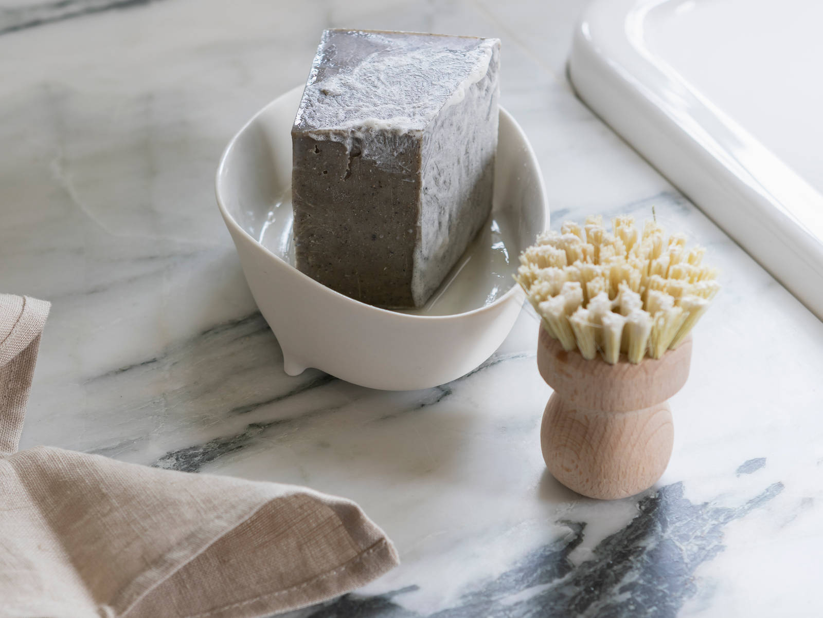 En benkeplate i granitt eller annen naturstein rengjøres med vann, eventuelt tilsatt vanlige rengjøringsmidler. Granitt kan rengjøres med syreholdige rengjøringsmidler og eventuelle kalkrester kan fjernes med kalkfjerner eller lignende.
