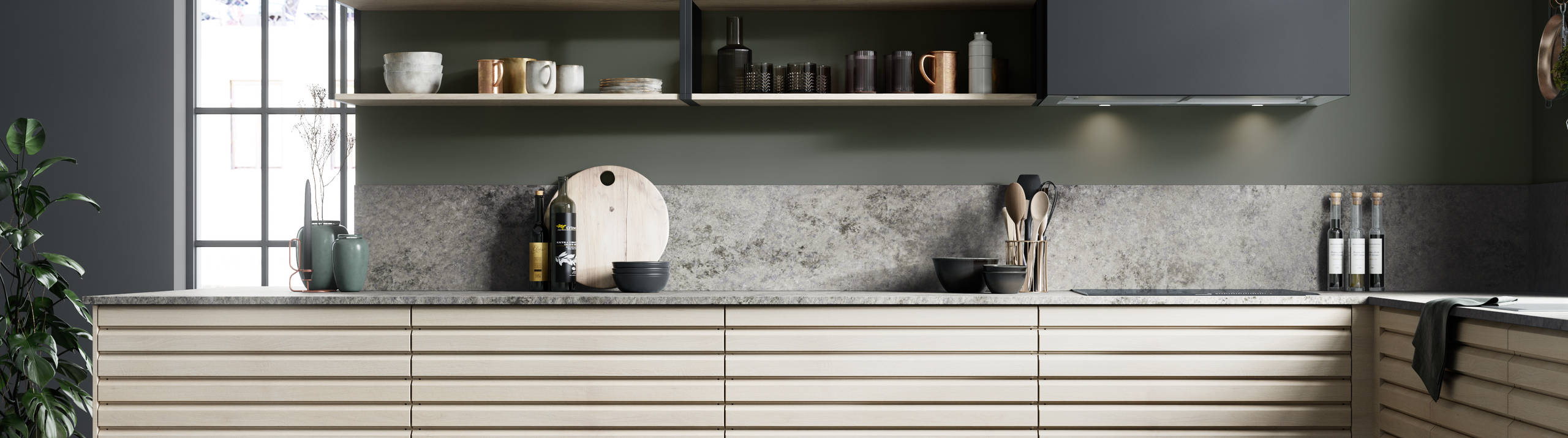 Alle våre benkeplater i laminat leveres også som veggpanel i tykkelsen 12 og 16 mm, i tillegg har vi ett produkt som kun leveres som veggpanel. Våre veggpaneler kan kantes på alle sider.