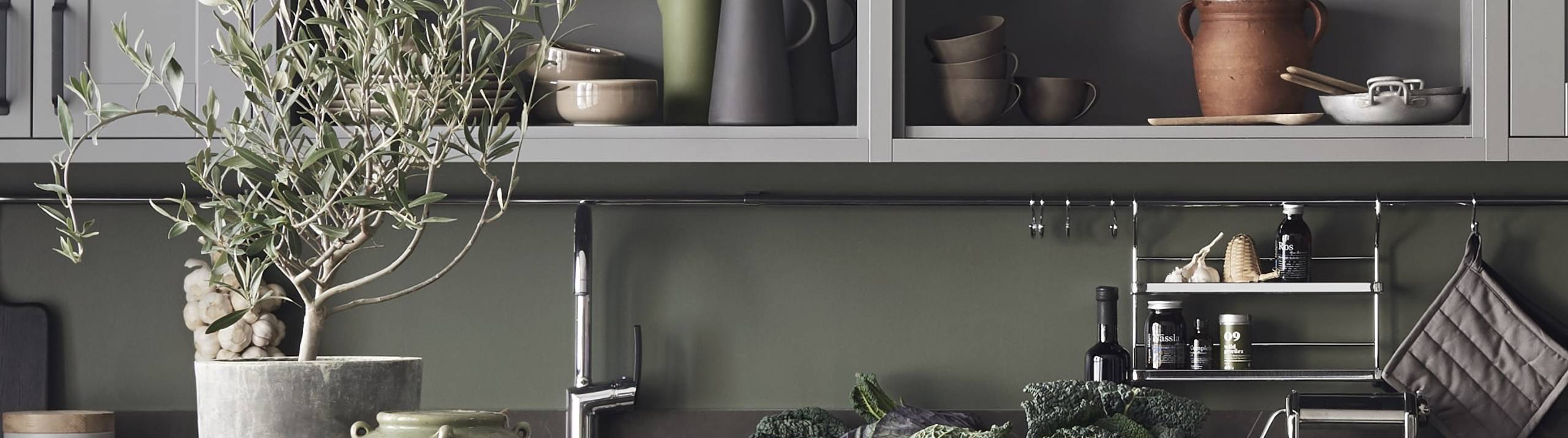 Ønsker du et lyst rom, kan fargen Korn være den perfekte lyse fargen til kjøkkenet ditt. Er du mer vågal kan du velge den mørkegrønne fargen Mose, som gir kjøkkenet ditt særpreg.