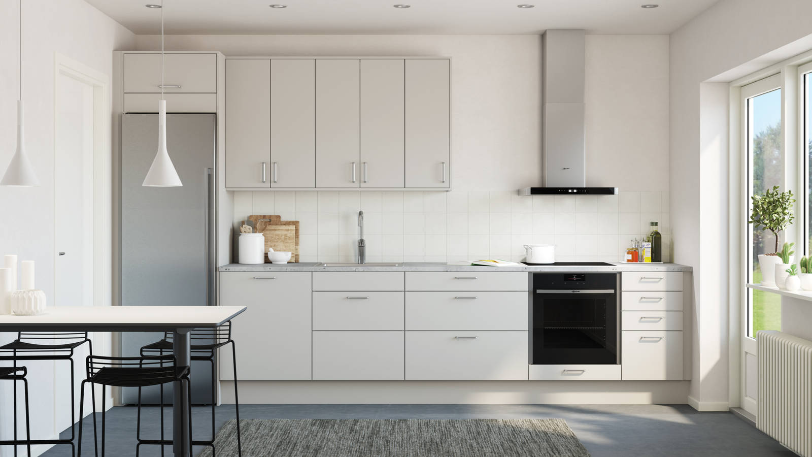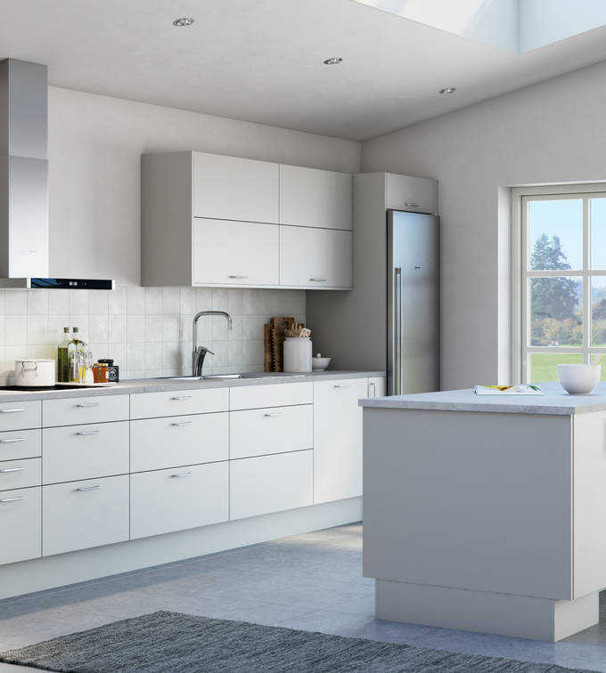 Modellen Line gir deg mange muligheter for forskjellige innredningsløsninger, slik at kjøkkenet glir elegant inn sammen med resten av huset.