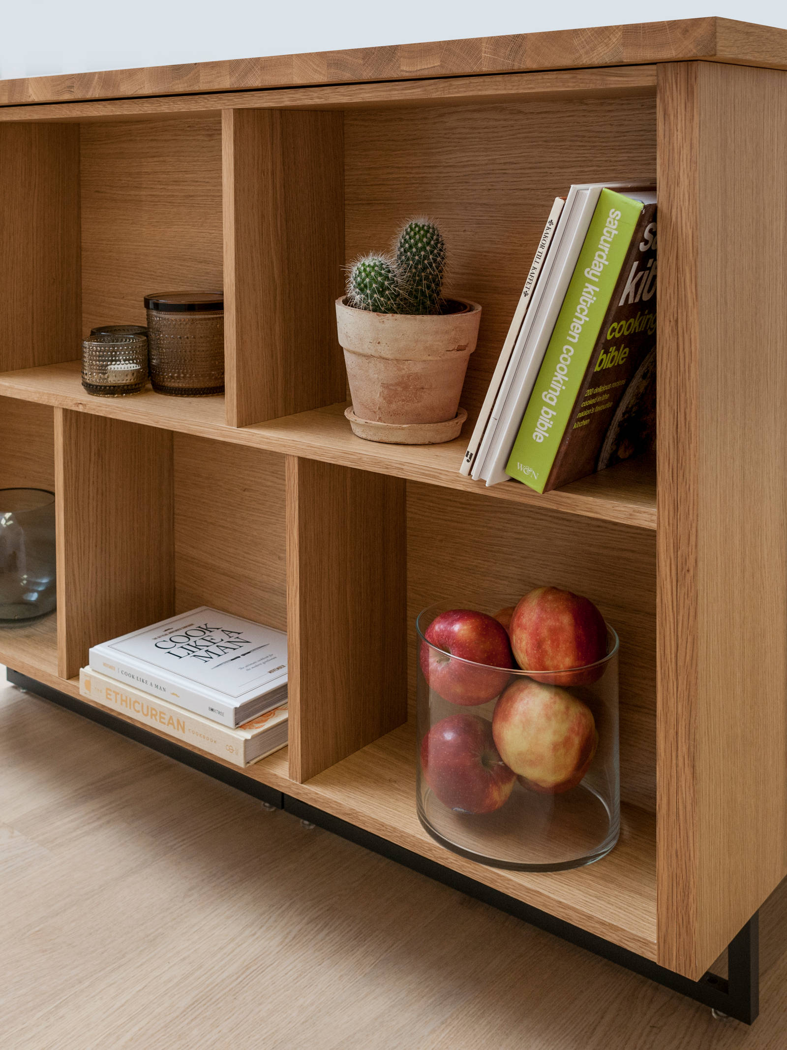 Lag en praktisk og fin avslutning på skapene dine med endebokhyller. Finnes for både høyskap, benkeskap og øyløsning.