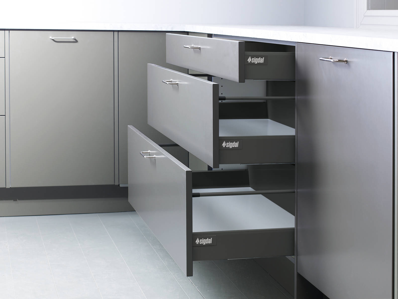 Kjøkkenet er en arbeidsplass. Og kjøkkenskuffene er verktøykassene dine. Du vil fort merke hvordan Sigdals skuffer gjør kjøkkenarbeidet enklere, mer oversiktlig og mer lystbetont. På et Sigdalkjøkken kan det fort bli rift om kjøkkentjenesten. Fritt for å lage maten i dag!