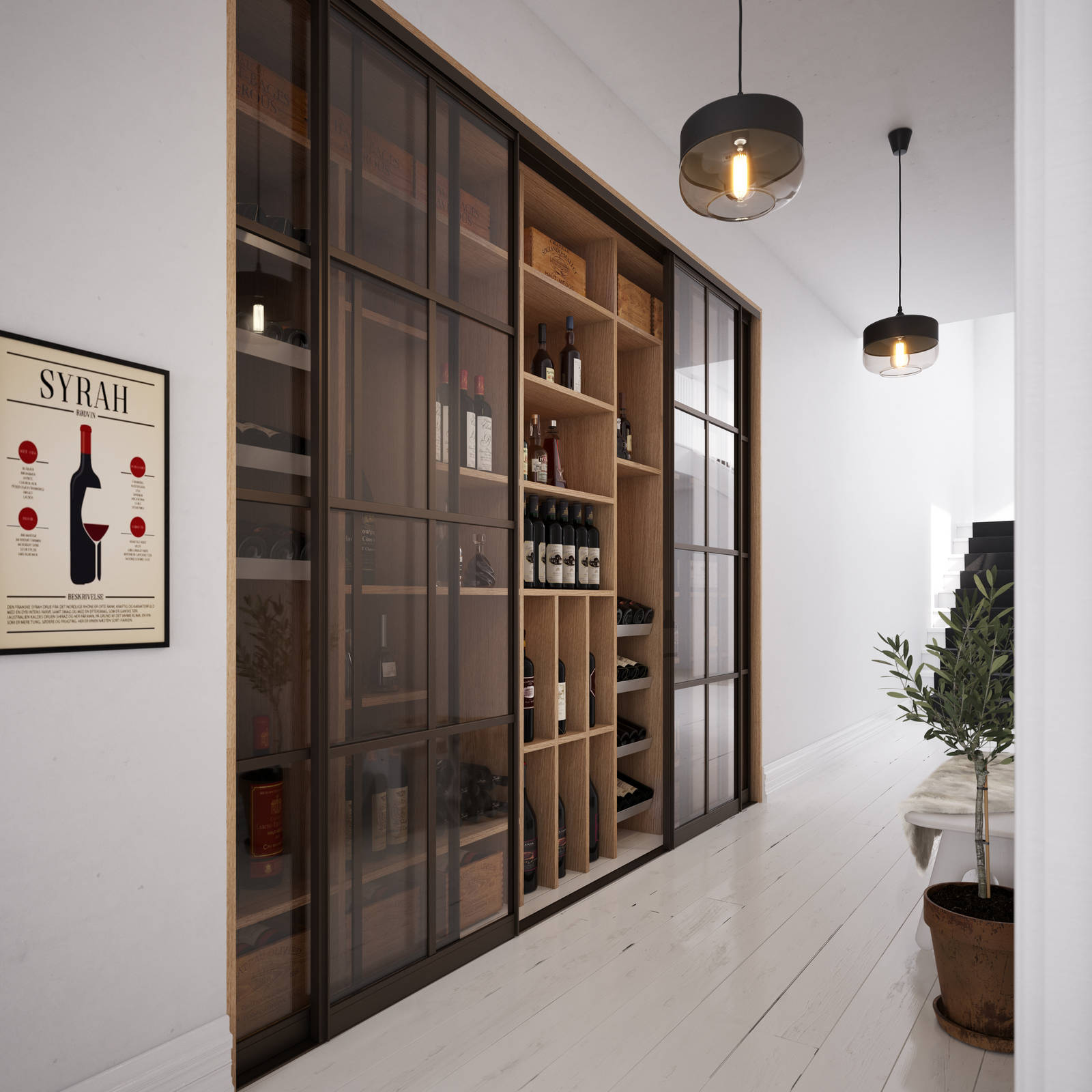 Alu slim er en garderobemodell med et eksklusivt uttrykk. Med gulvhjul som er skjult i dørens bunnskinne er den perfekt som romdeler eller til walk-in løsninger.
